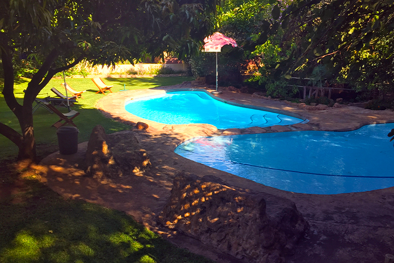 Nestled in a kloof with mountain walks in a tranquil environment with more than 170 species of birds recorded. Nomadic antelope the whole year round. Beautiful bushveld trees. Resort area is covered with bougainvilleas in different colours.